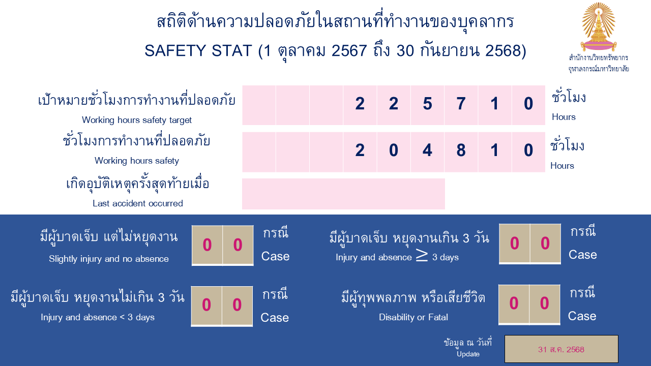 สถิติด้านความปลอดภัย อาชีวอนามัย และสภาพแวดล้อมในการทำงาน